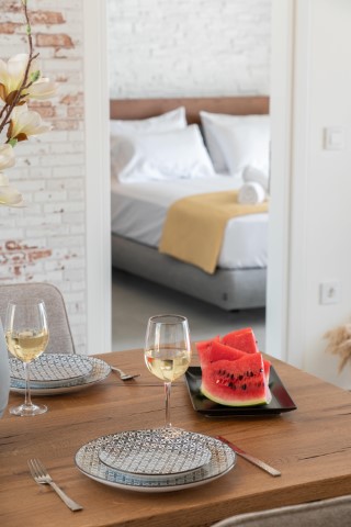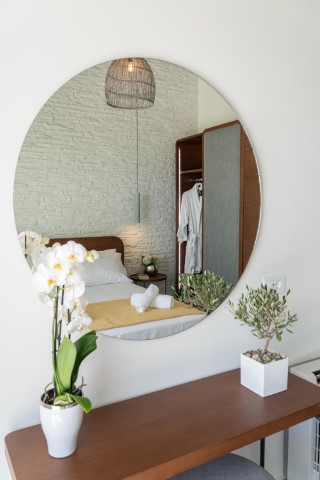 Offers ample tranquility, peace , nature and privacy within city limits. Designed with minimalistic approach ( local stone, wood and glass ), but equipped with all possible amenities and tech gaddgets to fulfill your every desire. The Villa can accommodate up to 5 people. Its interiors consist of 2 large bedrooms with en-suite bathrooms, a fully equipped kitchen with all utilities and a large dining area.Located in a private plot if more than 1 acres is home to local forest trees, olive and carob trees, natural surroundings garden. Indulge and relax in the infinity pool inluding while being inspired by the bayview.
