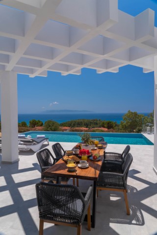 The 2 Bedroom Private Pool Villa is distinctively designed with comfort, relaxation and exceptional sea views in mind. With two bedrooms and two bathrooms they are ideal for families or friends and can each accommodate up to 5 guests.Enjoy a comfortable stay at spacious & luxurious newly built villa, located 2 minutes by the sea in the area of Trapezaki , within the lush greenery of Kefalonia! The sea view villas, built in a lovely estate with a private swimming pool, are designed to the highest standards and furnished in minimalist taste...White Blossoms Luxury Villa is a spacious modern villa built with a personal touch on a breathtaking edge view site, overlooking the gulf Trapezaki and the port of Pessada. Stunning during the day but also magnificent at night. The Villa is strategically located within few minutes drive between famous village of Lourdas and the town of Argostoli with immediate access to the main road and less than 15 minutes to kefalonia airport.